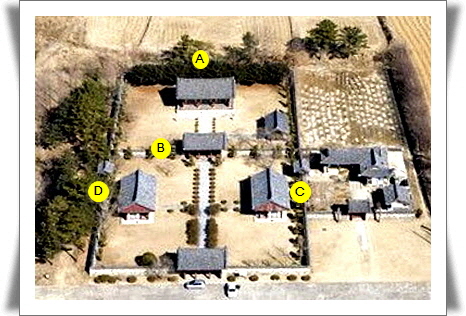A -육부전 ----- B -윤적당 ----- C -양산재 ----- D -익익재